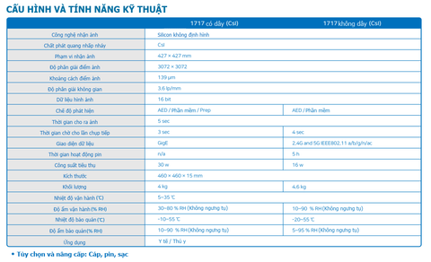 - Phạm vi nhận ảnh: ≥427 × 427 mm